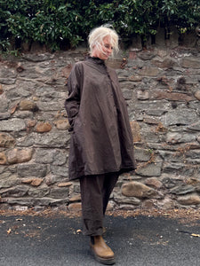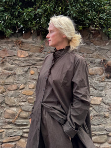 Jewerist Frill Neck Crunchy Cotton Shirt - Choco